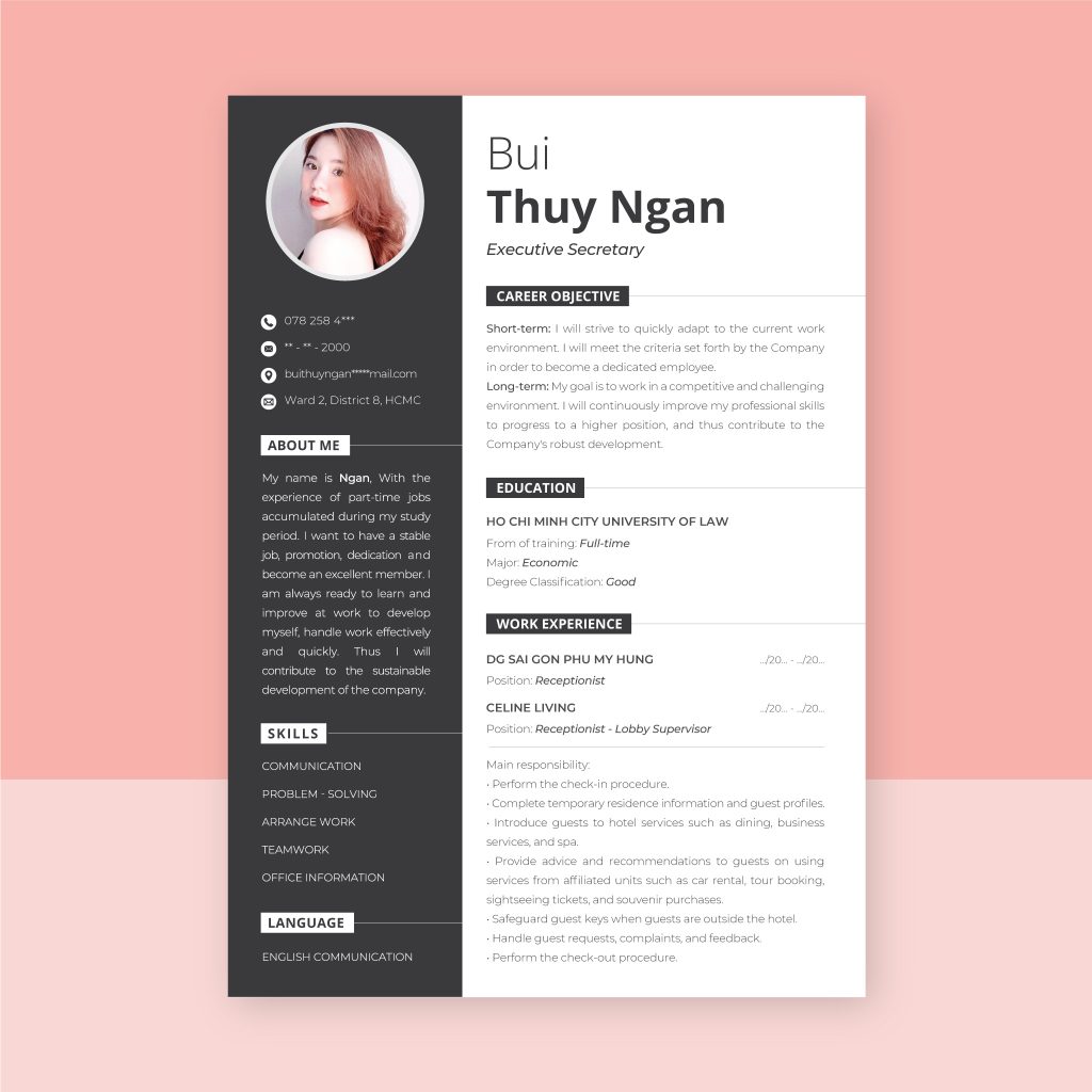 Chúng tôi chuyên thiết kế mới, chỉnh sửa cv theo yêu cầu với các ngôn ngữ: tiếng Việt, tiếng Anh, Trung, Hàn, Nhật. Nội dung được biên soạn bởi đội ngũ chuyên gia am hiểu thị trường lao động, đảm bảo đúng thuật ngữ chuyên môn của từng ngành nghề.