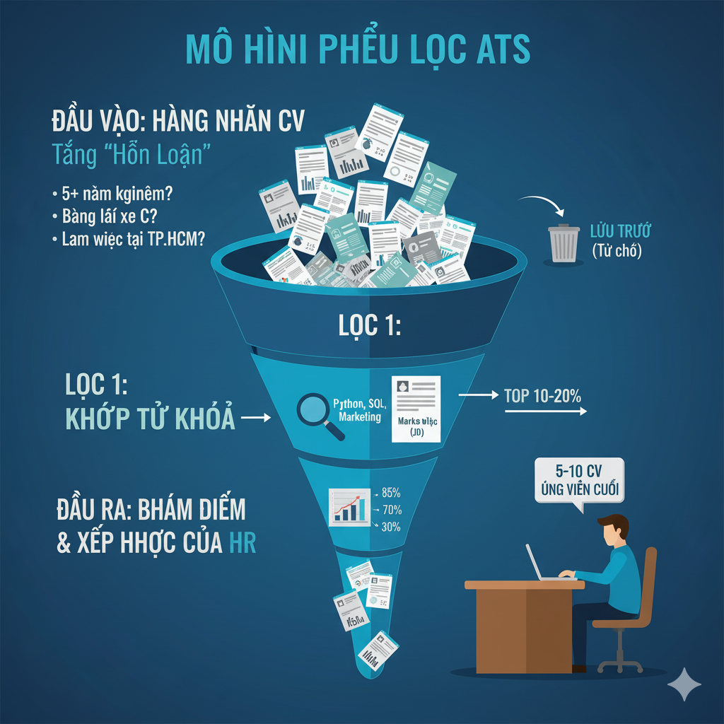 Hãy tưởng tượng ATS giống như một “người gác cổng” kỹ thuật số. Khi bạn nộp đơn online, CV của bạn không bay thẳng vào hộp thư của HR đâu. Nó sẽ đi qua bộ lọc ATS trước.